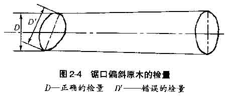 b.檢量鋸口偏斜原木的直徑時(shí),應(yīng)垂直于原木的縱軸檢量,不允許與截面平行進(jìn)行檢量(圖2-4)。